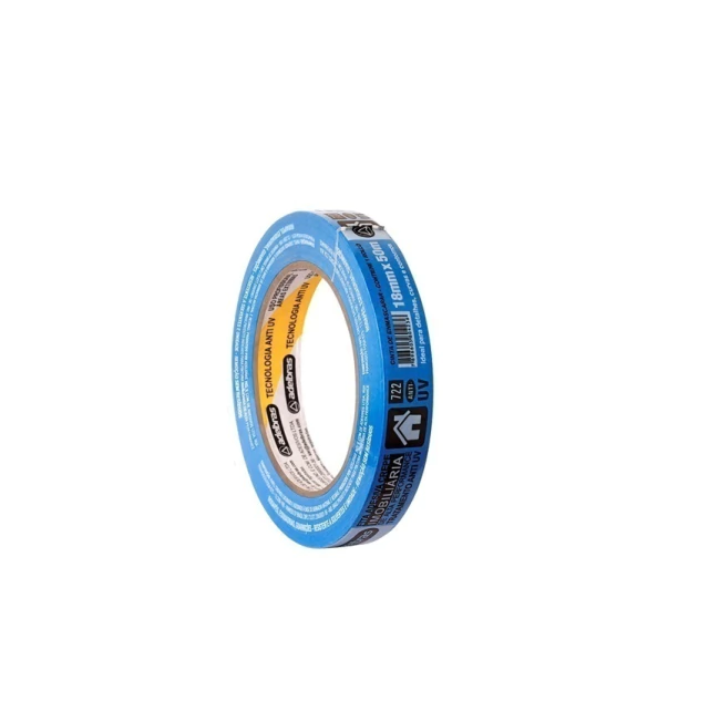 Nossa fita crepe azul imobiliária possui um papel com excelente alongamento, proporcionando boa performance em curvas e contornos do mascaramento.
