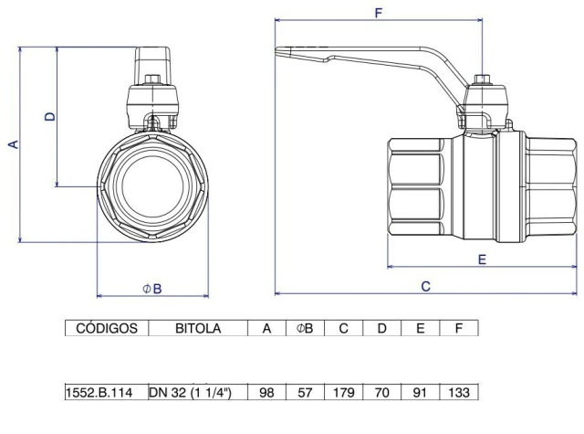 REGISTRO DE ESFERA DE 1.1/4 POL1552.B.114 DECA