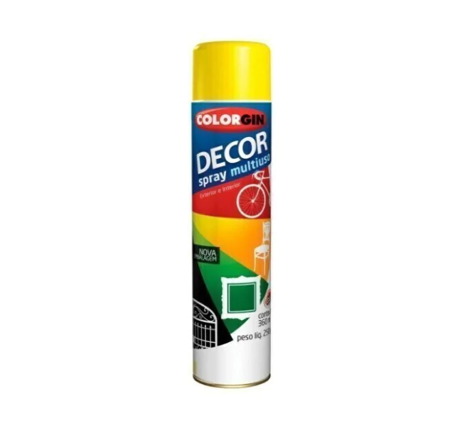 TINTA SPRAY AMARELO 360ML COLORGIN COLORGIN DECOR em spray é uma linha de produtos formulados com resinas acrílicas de secagem rápida, que garantem ótimo acabamento e grande durabilidade. Possui ótimo poder de cobertura, resistência às intempéries e excelente efeito decorativo. Pode ser usado em ambientes internos ou externos.