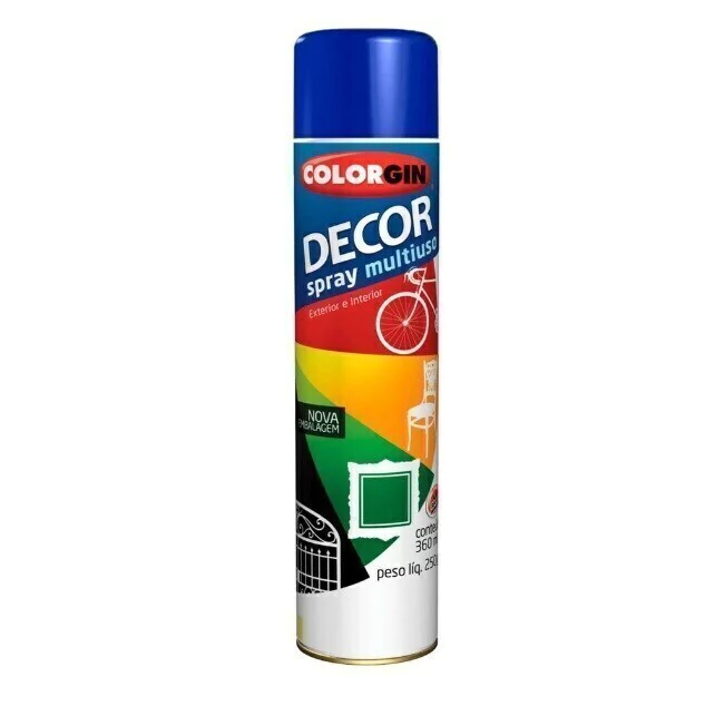 TINTA SPRAY AZUL COLONIAL 360ML COLORGIN COLORGIN DECOR em spray é uma linha de produtos formulados com resinas acrílicas de secagem rápida, que garantem ótimo acabamento e grande durabilidade. Possui ótimo poder de cobertura, resistência às intempéries e excelente efeito decorativo. Pode ser usado em ambientes internos ou externos.