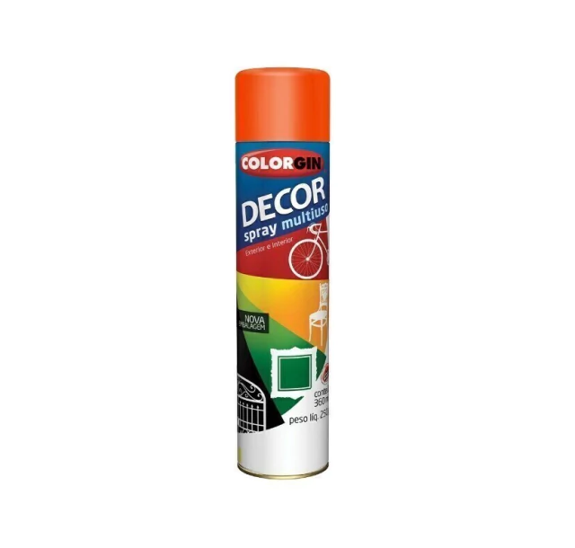 TINTA SPRAY LARANJA 360ML COLORGIN COLORGIN DECOR em spray é uma linha de produtos formulados com resinas acrílicas de secagem rápida, que garantem ótimo acabamento e grande durabilidade. Possui ótimo poder de cobertura, resistência às intempéries e excelente efeito decorativo. Pode ser usado em ambientes internos ou externos.