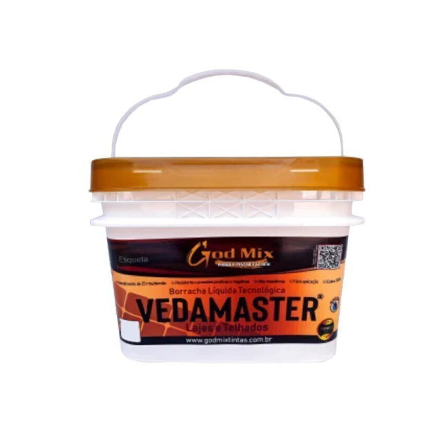 O Vedamaster Lajes e Telhados é o que existe de mais avançado em impermeabilizações. É uma borracha liquida tecnológica de alto desempenho, protegendo a estrutura de aplicação á frio com rolo epóxi, que após secagem, forma uma película uniforme, elástica, (ATÉ 200 por cento), com proteção UV (ultravioleta), resistente à pressão positiva e negativa. Cores: Branco, Alumínio e Cerâmica